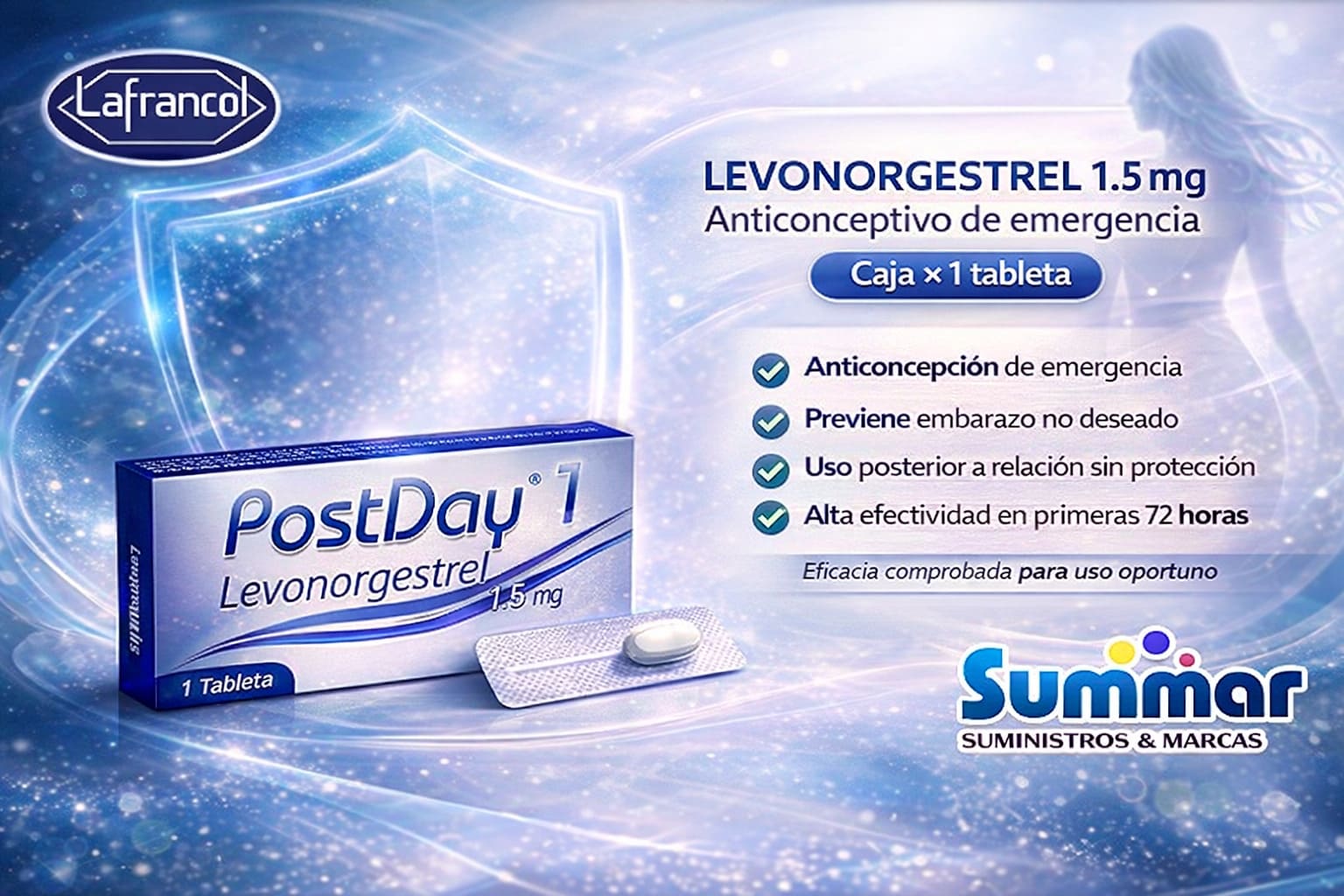 PostDay 0.75mg Caja x 4 Tabletas (Levonorgestrel) LAFRANCOL
