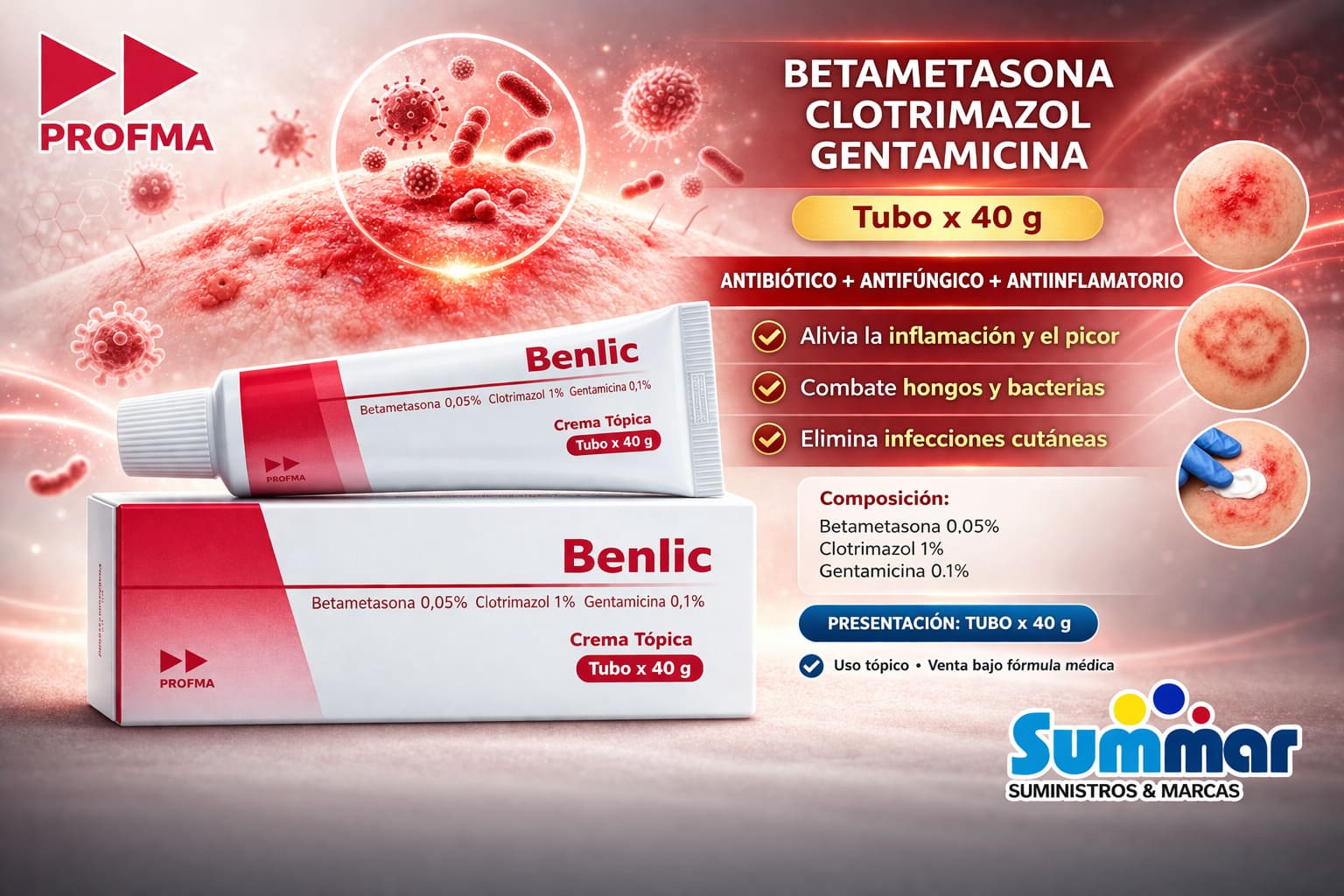 Benlic Crema Tópica × 20g (Betametasona Clotrimazol Gentamicina) PROFMA