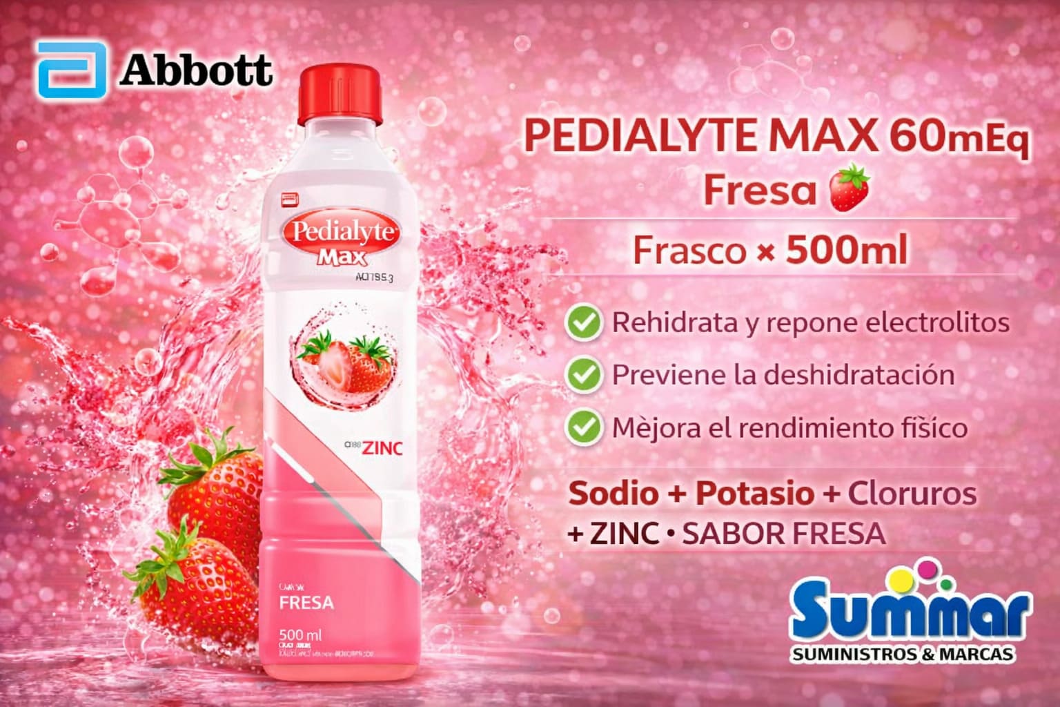 Pedialyte Max 60meq Sabor Coco con Zinc Frasco x 500ml ABBOTT
