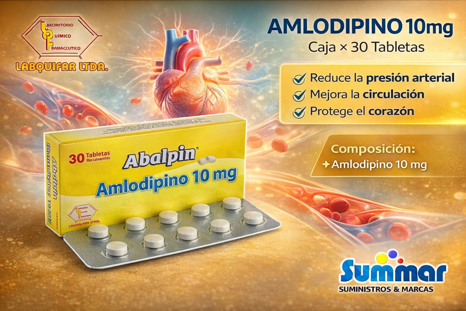 Amlodipino 10mg Caja x 10 Tabletas COASPHARMA