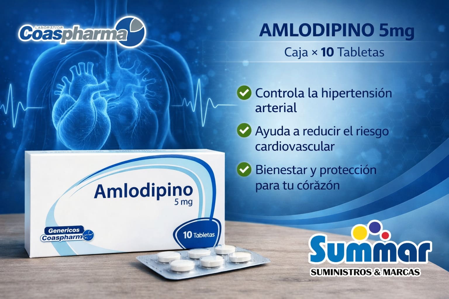 Amlodipino 10mg Caja x 10 Tabletas COASPHARMA