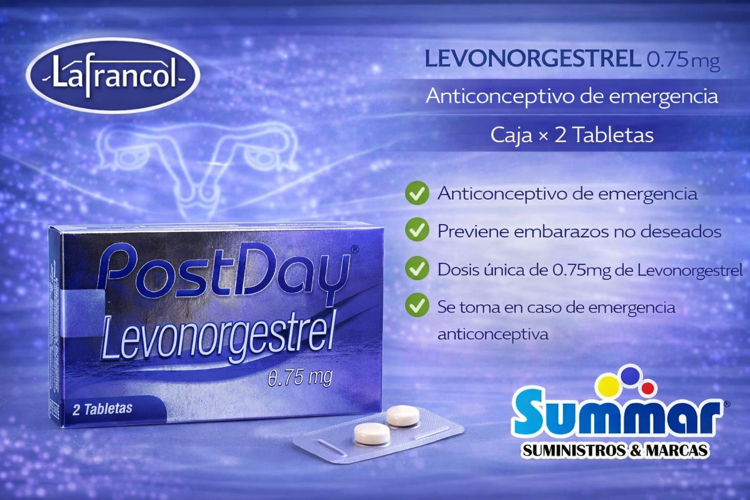 PostDay 0.75mg Caja x 4 Tabletas (Levonorgestrel) LAFRANCOL