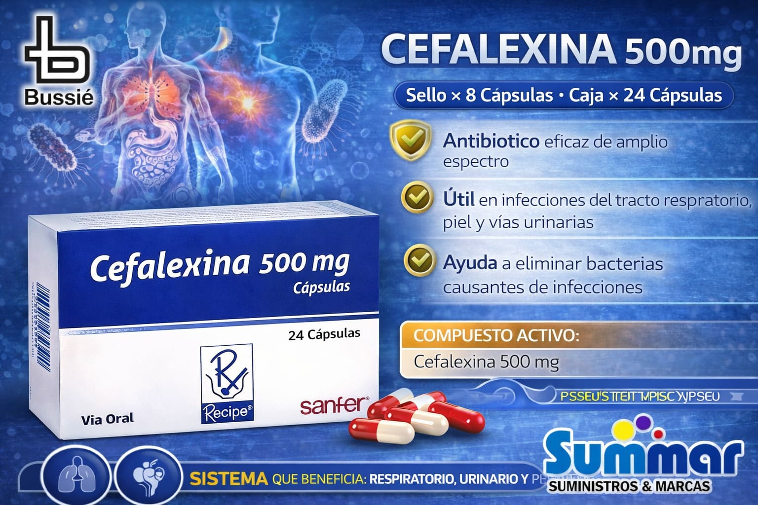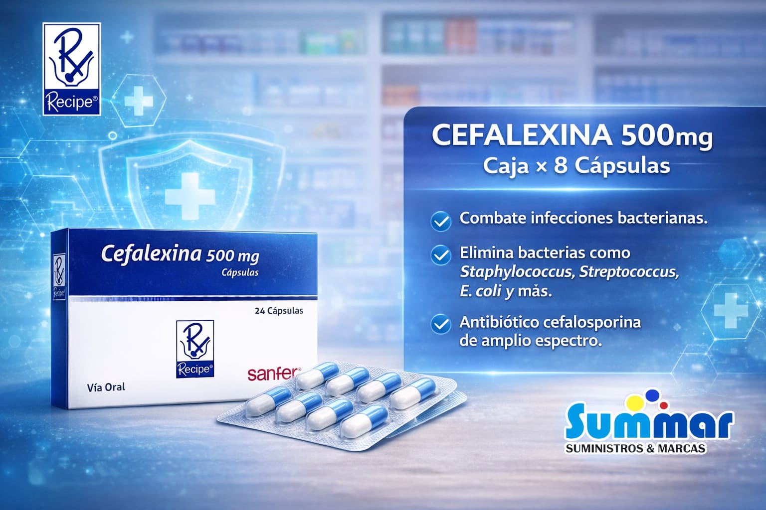Cefalexina 500mg Caja x 100 Cápsulas RECIPE